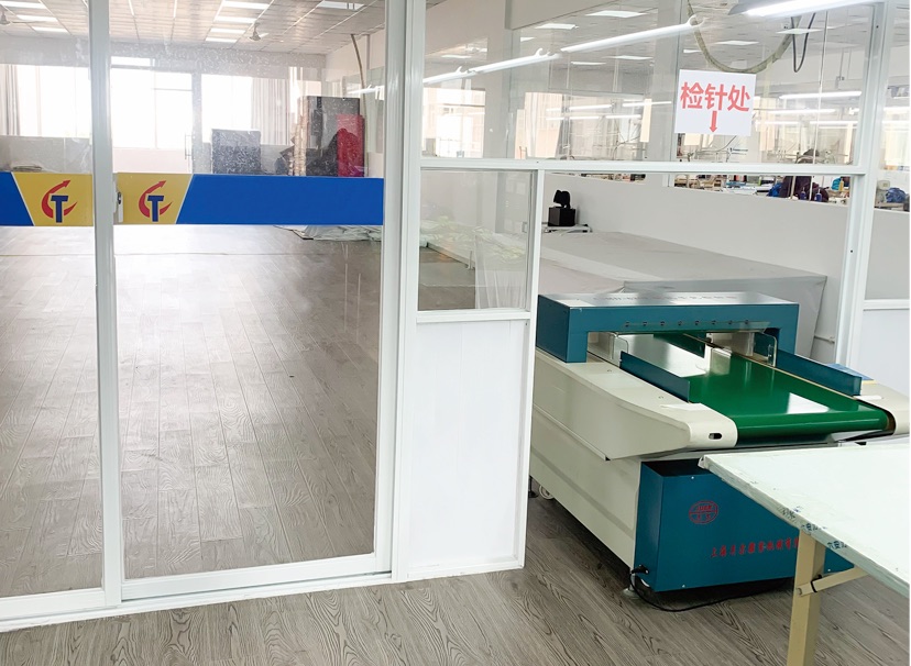 ファスナー・ボタンは検針機対応のもののみ使用。また、袋入れの後に全商品の検針を行っております