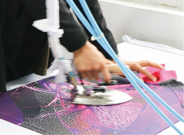 商品デザインの幅を広げられるよう、昇華の特徴を生かし、デニム風、杢風など生地の風合いを再現できるデータ処理の方法を日々研究しております。